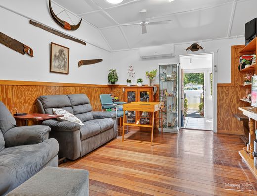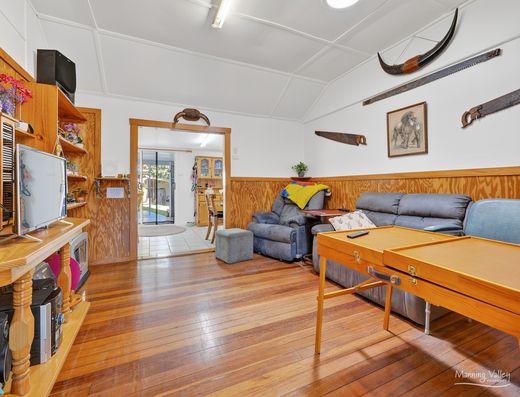 This semi-rural haven unfolds to reveal a spacious dwelling perfectly suited for diverse living arrangements, ideal for accommodating separate or multi-generational families. Surrounded by lush, mature trees and gardens, the property sets the stage for a potential hobby farm or a bush retreat.