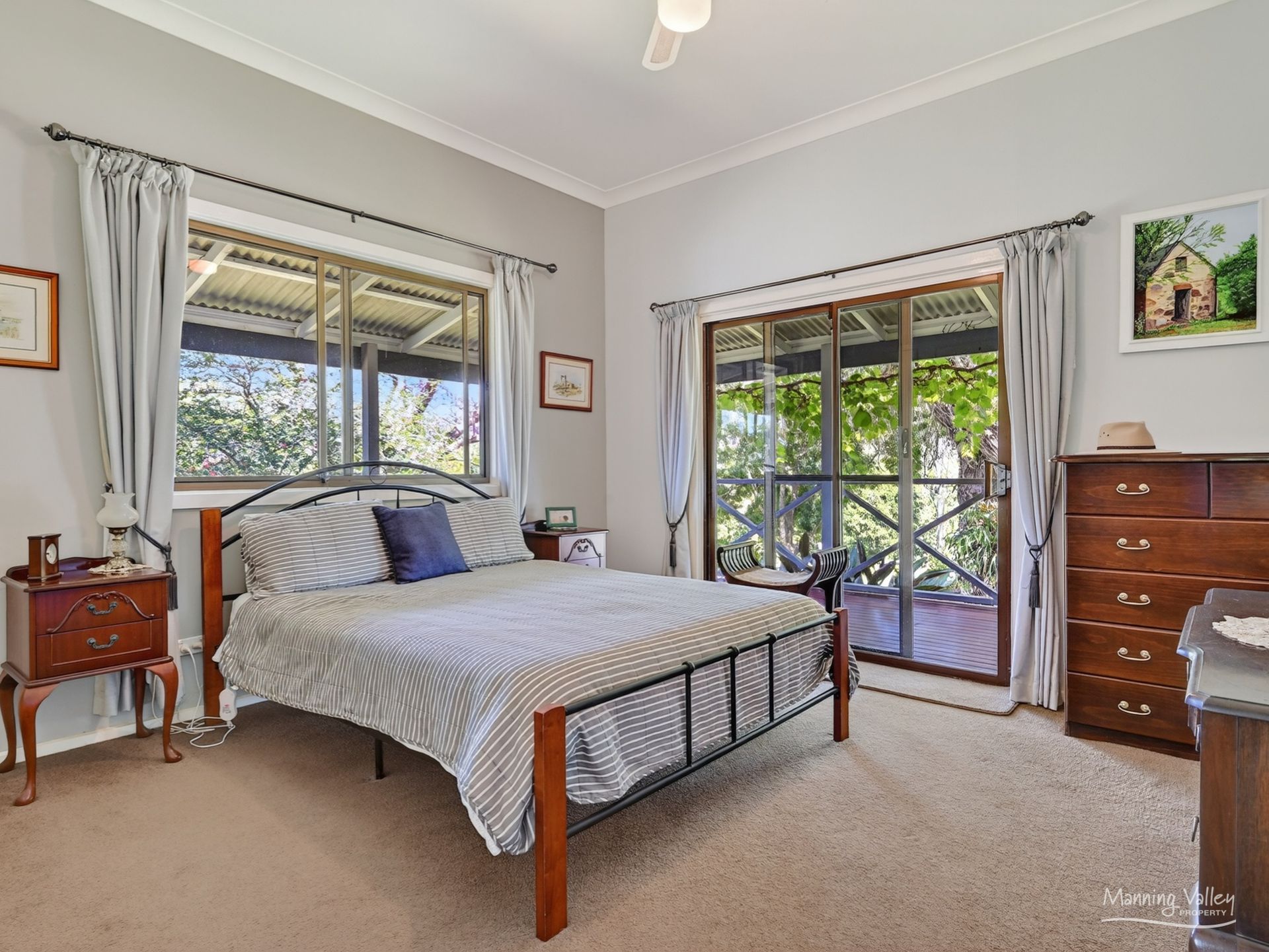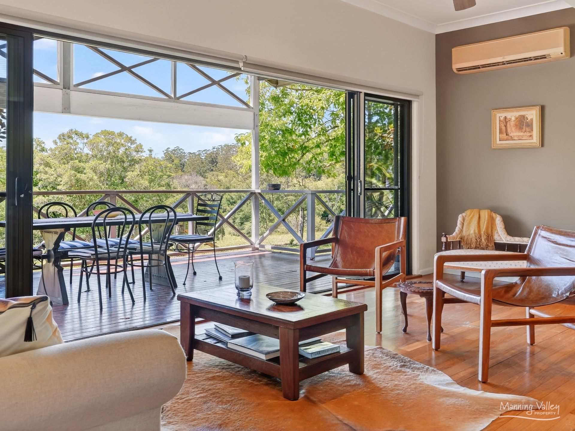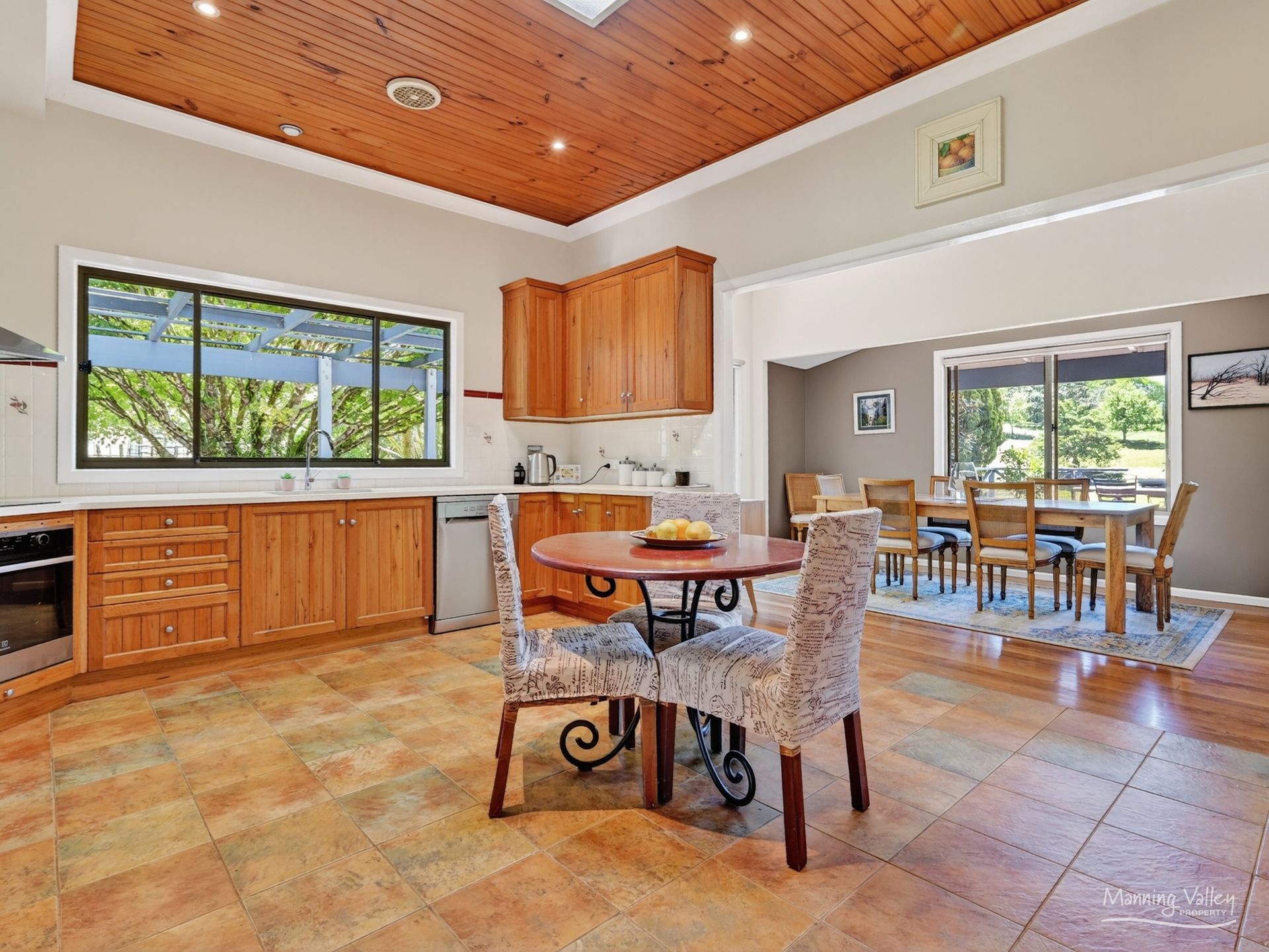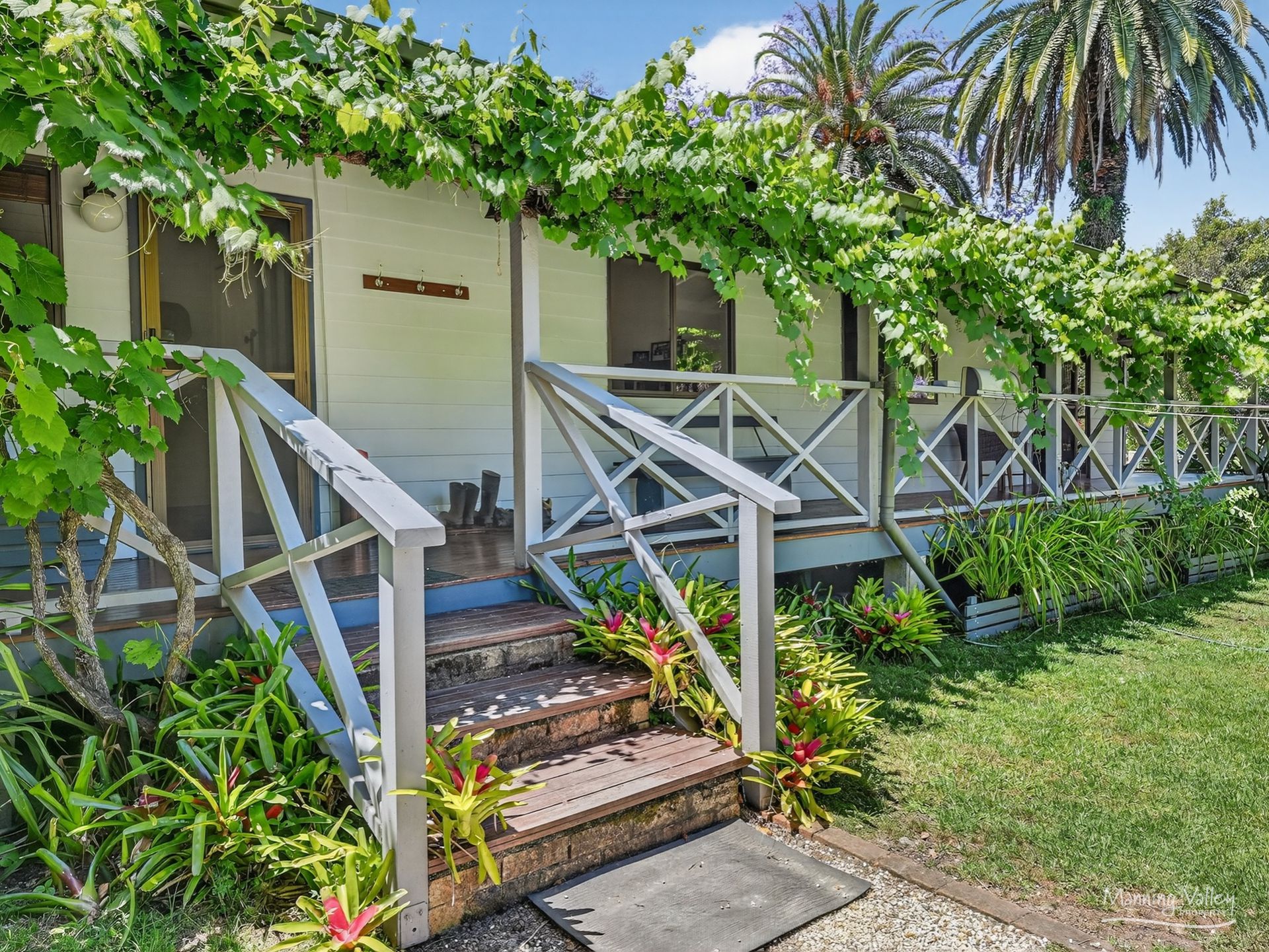 The country kitchen and living spaces flow effortlessly onto a wrap-around deck draped in grapevine aesthetics that widens on the East side, giving the home the romance of a country retreat while providing an idyllic setting for long lunches, family gatherings or serene evenings listening to the bush settle. Every day here feels unhurried, peaceful and deeply connected to nature.