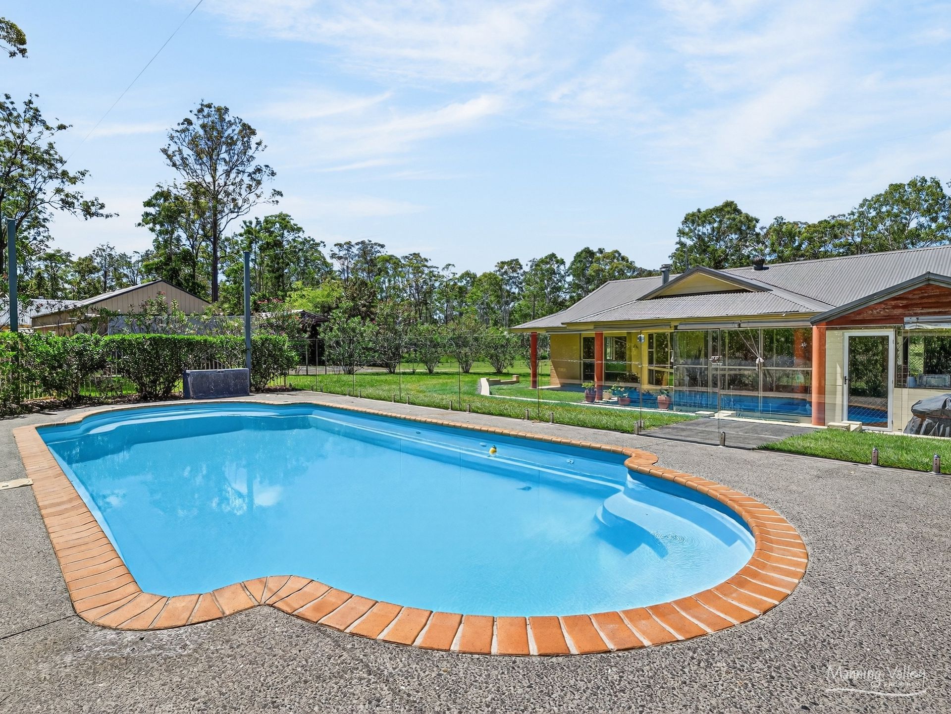 • Inground salt and chlorine swimming pool with glass fencing